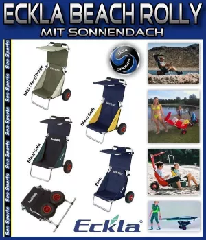 Der Eckla Beach-Rolly ist die ideale Transporthilfe für Surfboards, Kanus, Kajaks, Schlauchboote, Angelzubehör, Badesachen, Getränke, Kühltaschen, Freizeitzubehör und vieles mehr. Für Ruhepausen wird der Beach Rolly einfach aufgerichtet und fertig ist der bequeme Sitz. Die integrierten Polster gewähren einen hohen Sitzkomfort. Der Beach-Rolly hat ein geringes Gewicht und besteht aus einer stabilen, nichtrostenden Aluminium-Konstruktion. Die breiten Räder verhindern ein Einsinken im Sand und ermöglichen dadurch einen bequemen Transport.