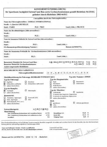 Nachdruck Konformitätserklärung für Maine Boote (bitte Seriennummer, Baujahr und Modell angeben, Auslieferung erfolgt per Mail in PDF-Format)