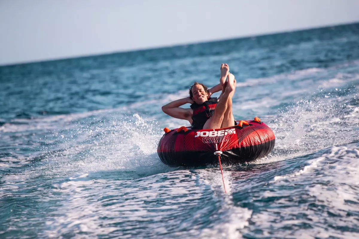 Sie brauchen nicht viel Geld für endlosen Spaß auszugeben! Unser Crusher Towable kann 1 Person tragen und ist etwas größer als der Jobe Rumble. Das Innenmaterial ist aus 24G PVC, die ihn sowohl stark als auch federleicht machen. Er kommt mit 4 luxuriösen Neopren Knöchel-Schutz Griffen die Sie im sitzen oder liegen nutzen können. Kommt ausgestattet mit einem Komfortpolster.