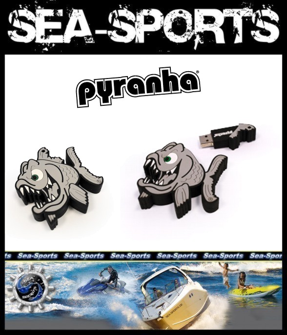 Bewahren Sie Ihre Bootfahrfotos, Filme und andere Dokumente in Stil mit dem Pyranha Gummifische 4GB USB auf.
