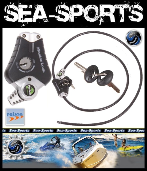 Sehr stabile Diebstahlsicherung für Kajaks, Fahrräder und andere Sportgeräte. Das Stahlseil kann nach dem Verschließen noch gespannt werden. Das System ist in drei verschiedenen Stahlseil-Längen lieferbar.
