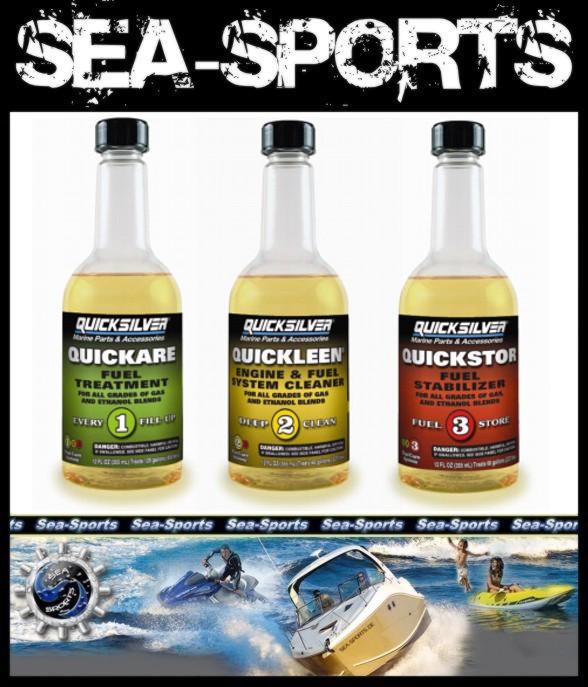 Quicksilver Quickare ist ein Ottokraftstoff-Zusatz, das die Motorenperformance mit allen Benzinsorten verbessert, auch mit den E5 oder E10 Sorten. Es verhindert eine innermotorische Korrosion oder die Verharzung des Kraftstoffs, welches im Bootsportbereich sehr häufig die Ursache für Maschinenausfall ist. Quicksilver Quickare löst vorhandene Verharzungen und Korrosionsrückstände in Kraftstoffleitungen, Tanks, Vergasern und Injektoren, EInlassventilen und Zündkerzen.