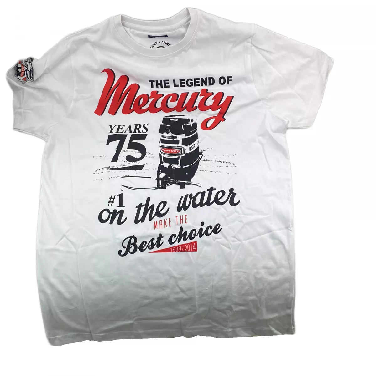 Gr. L Quicksilver Mercury T-Shirt WHITE MERC LEGEND 75years 75 Jahre Mercury weiß mit Print altern. AMAR091WL(Artikel wird vom Hersteller nicht mehr produziert, daher nur begrenzt verfügbar)