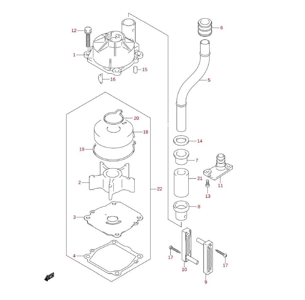 Reparaturset Wasserpumpe, Repairset Waterpump, Ersatzteile für Suzuki 140PS 4Takt, Motor-, Wasserpumpe-, Ersatzteile