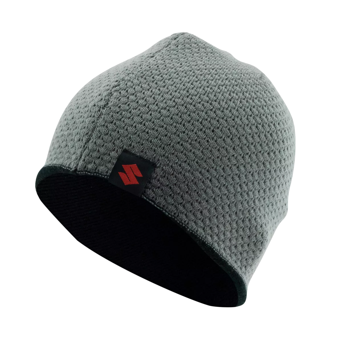 Team Black Wendestickmütze Beidseitig tragbare Strickmütze in Schwarz/Grau, mit rotem SUZUKI Logo, an genehmer Tragekomfort 100% Polyacryl