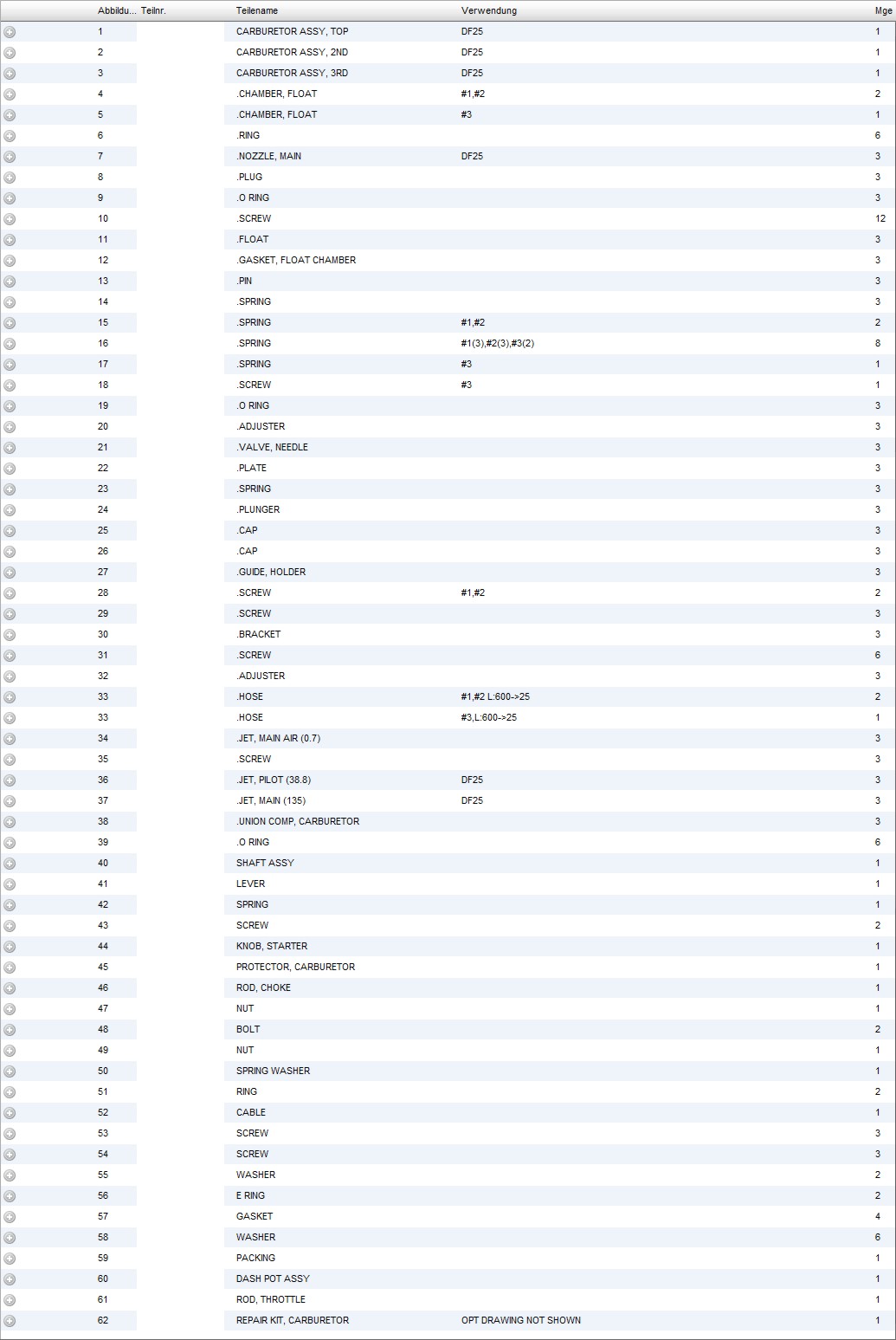 Ersatzteile für Suzuki 25PS (18,4KW) 2Takt Außenborder , Motor-, Vergaser-, Ersatzteile, DF25