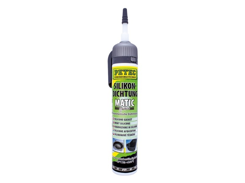 Die Silikondichtung Matic ist ein einkomponentiges, dauerelastisches Silikon auf Polysiloxan-Basis für Anwendungen in temperaturbelasteten Bereichen. Sie ist eine Alternative zu herkömmlichen Feststoffdichtungen. Dichtet unter anderem Metallteile (Aluminium, Guss, Stahl usw.) sowie Kunststoffe, Glas, Keramik und Holz ab.