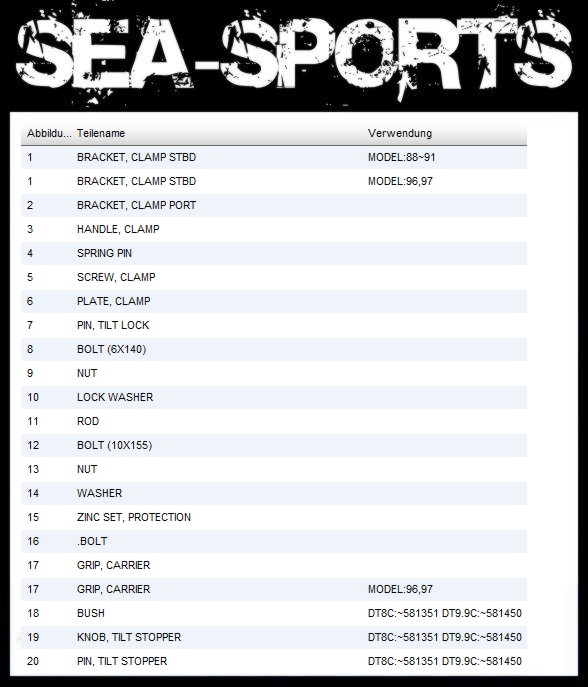 Ersatzteile Suzuki 8PS (5,88KW) 2Takt Außenborder , Außenteile-, Klemmschelle-, Ersatzteile, DT8