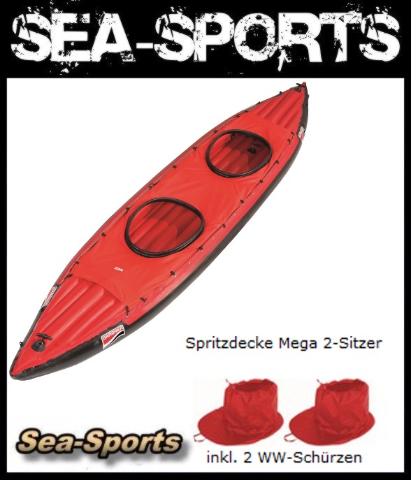 Bei der Spritzdecke für Mega 1-Sitzer und 2-Sitzer sind die Spritzdeckenbefestigungen bereits serienmäßig am Boot aufgeklebt. Die Spritzdecke kann ohne Vorarbeiten sofort verwendet werden.