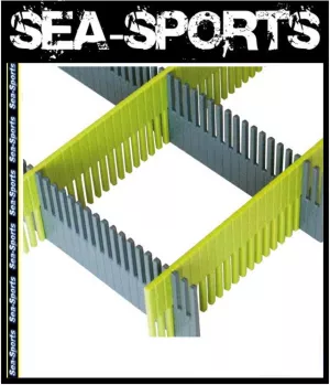 4 Leisten in grau, 4 Leisten in Lime welche einen variablen Facheinsatz ergeben. Die enge Rasterung ermöglicht eine sehr flexible Verstellbarkeit,.