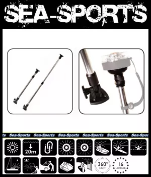 Teleskopische Aluminium-Halterung mit einer Länge von 48 bis 76 cm. Metallisches Ende für Befestigung der Navilight mit Magnet. Verriegelbar durch 1/4-Drehung.Befestigung durch Schrauben (im Lieferumfang enthalten). Um 180° schwenkbar.Montage senkrecht oder waagerecht möglich.