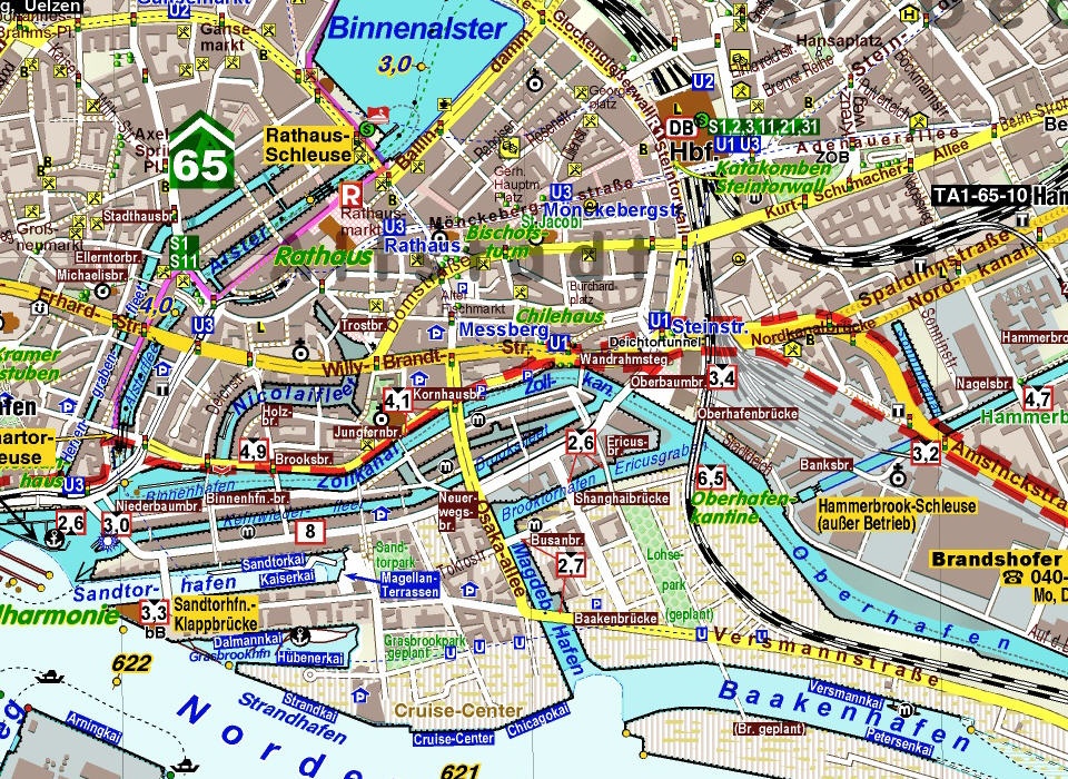 Zusätzliche Inhalte gegenüber der 1. Auflage: Gesamter Hamburger Hafenbereich im Maßstab 1: 25.000;