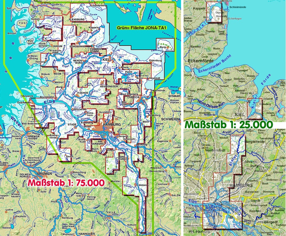 Maßstäbe: 1:75.000 und 1:25.000