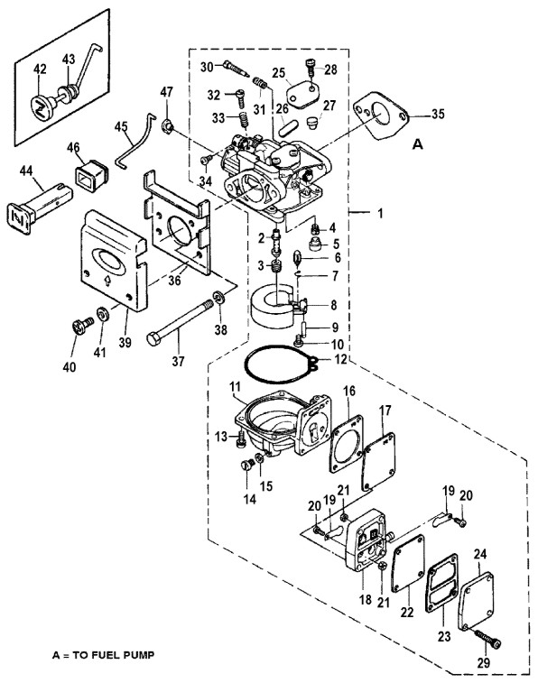 4PS Vergaser komplett, Carburetor, Mercury, Mariner 4-5PS 2Takt, Motor, Vergaser, Ersatzteile Seriennr.: 9589154-0P016999