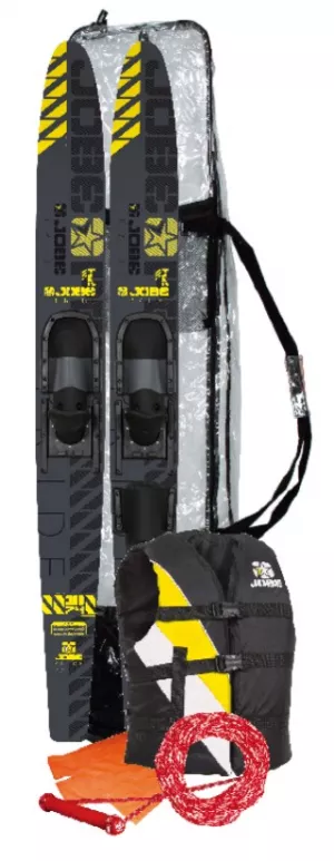 Beginner to intermediate injection-molded combo pair Can be used as either combo skis or as an entry-level slalom ski Foam-lined adjustable horseshoe bindings with trigger adjustment Tunnel bottomed for greater stability Bright yellow fins for visibility
