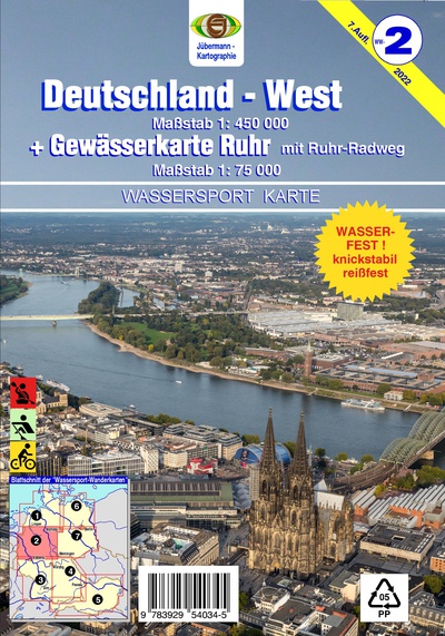 WW2 Wassersport-Wanderkarte Deutschland West mit Karte der Ruhr